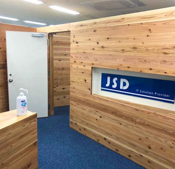 オフィスのエントランスには茨城県大子の天然杉を採用。